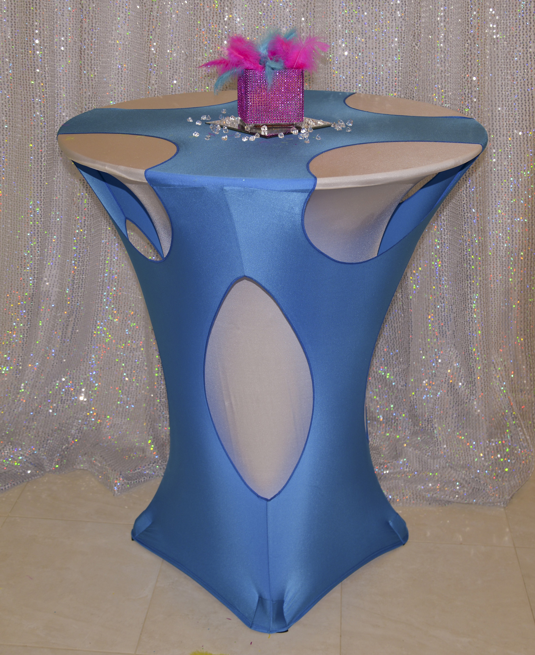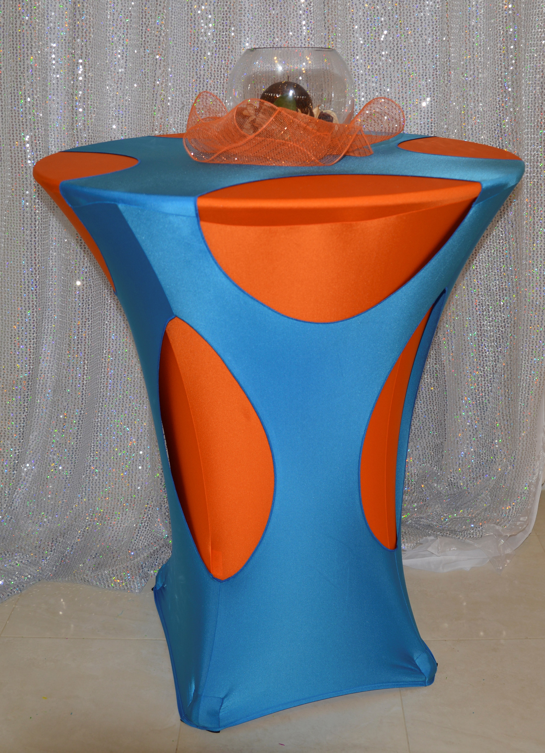 Spandex overlays in various colours available. Add them to your spandex cocktail table covers for added appeal