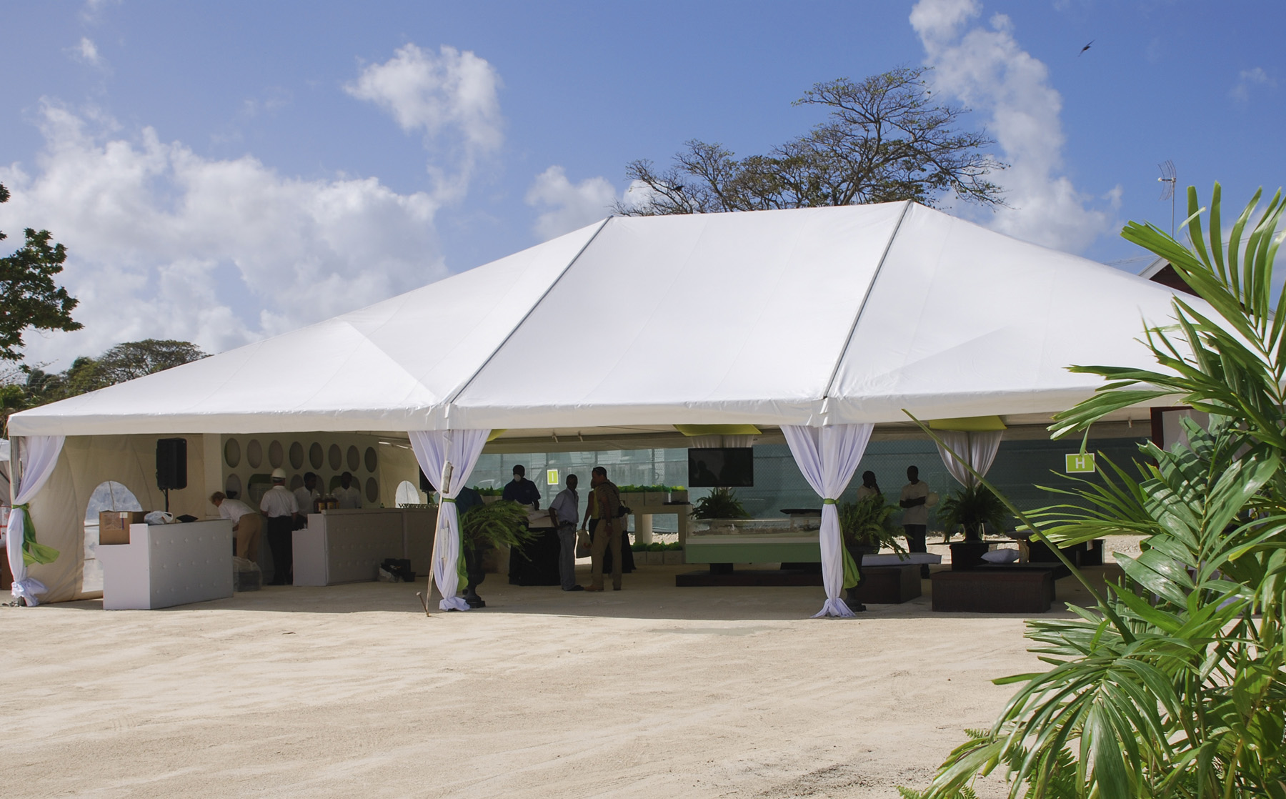 30ft wide expandable Keder structure tent for a clean and modern look. Expands in 15ft sections and is available with white or clear top.